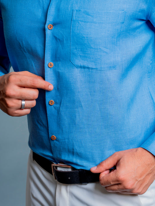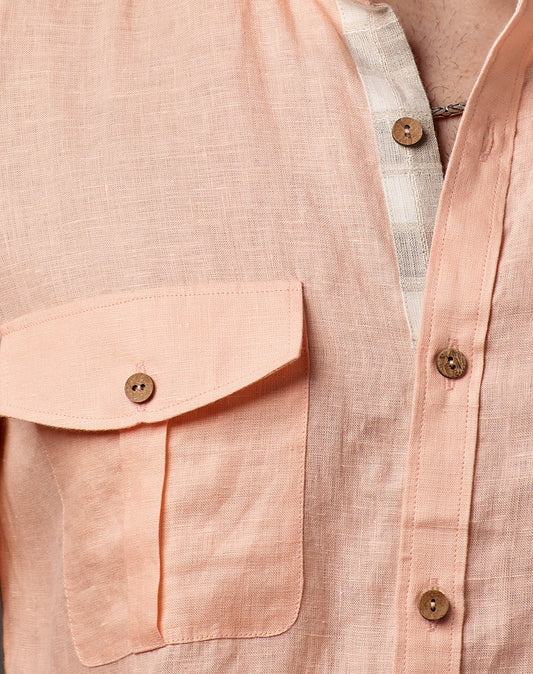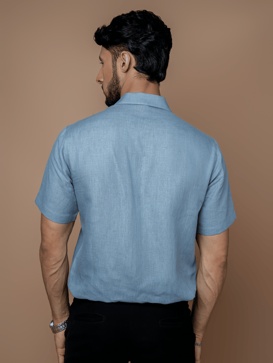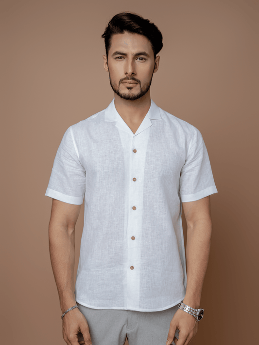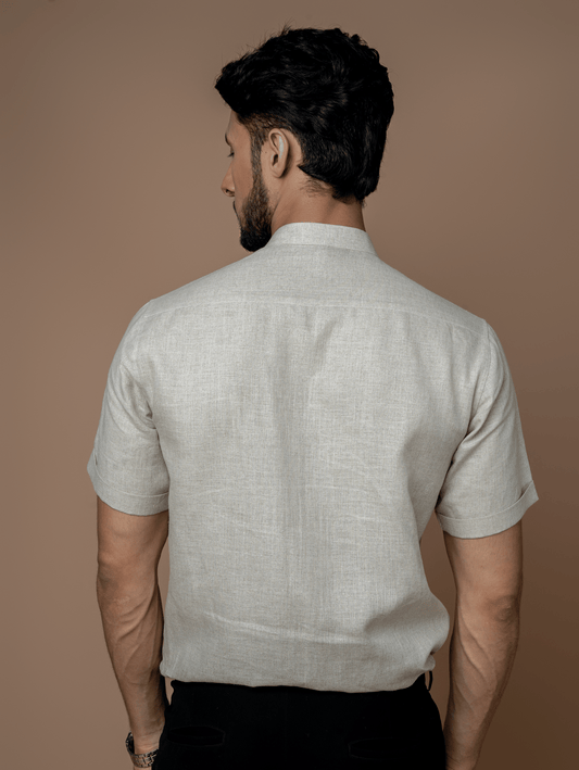 Formal Half Sleeves Linen Shirt With Cuban Collar