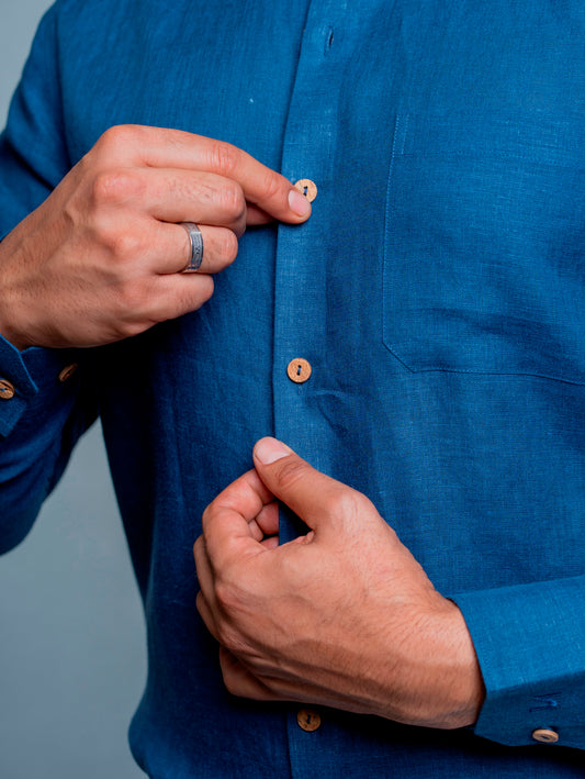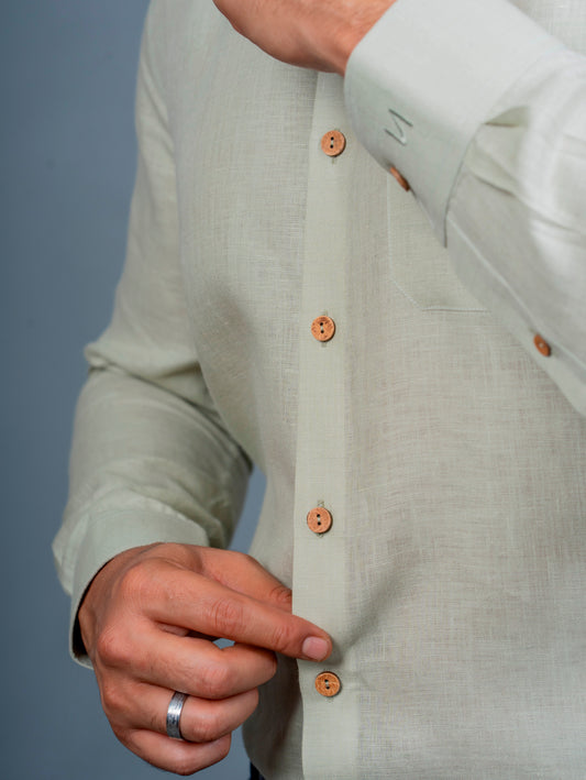 Formal Full Sleeves Linen Shirt With Mandarin Collar