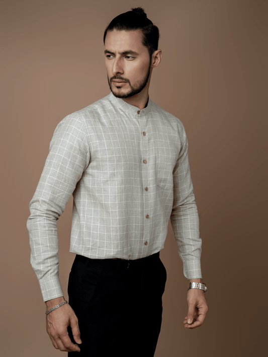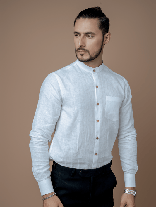 Formal Full Sleeves Linen Shirt With Mandarin Collar
