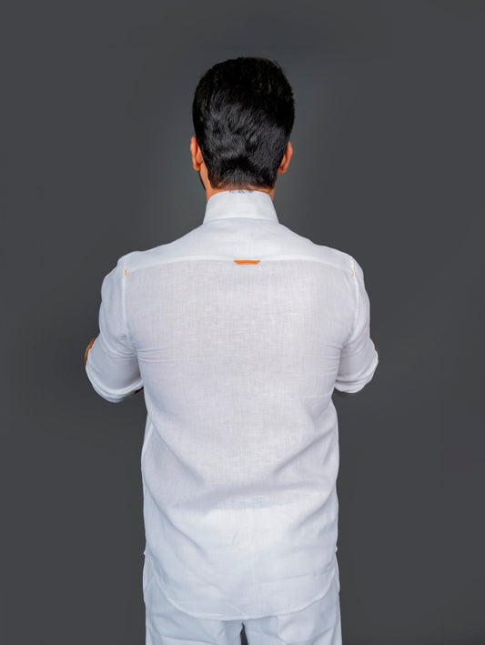 Linen Half Packet Shirt Roll Up Sleeve With Tab & Band Collar