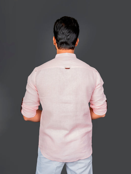 Linen Shirt With Double Mandarin Collar Roll Up Sleeve With Tab