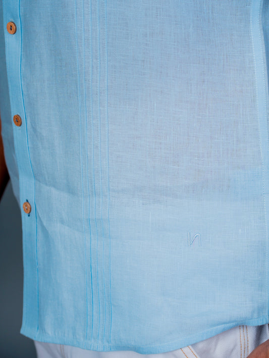 Linen Half Sleeves Shirt Pin Tuck Detailing With Hand Embroidery At Back